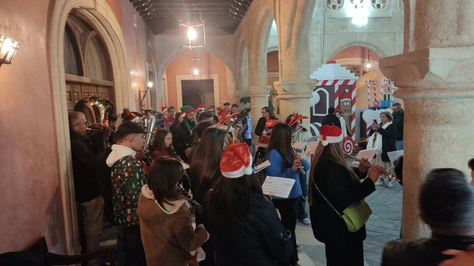 Ayer ya tuvo un cálido recibimiento y se espera que lo tenga esta tarde y mañana. Además, durante la tarde y con motivo de su visita, los músicos de la banda municipal 'Maestro Enrique Galán' estuvieron animando con piezas populares y villancicos no solo el ambiente del patio del Castillo de Luna dando la bienvenida a los ciudadanos que iban a ver a Papá Noel, sino por las calles comerciales para animar las compras.