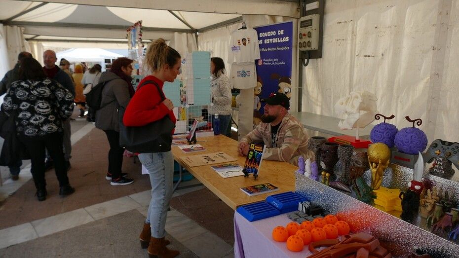 El delegado de Juventud, Pablo Gómez, ha dado una vuelta por los stands esta mañana, confiando en que a medida que vaya avanzando el día, teniendo en cuenta que por la mañana muchas personas están trabajando, el ambiente se anime aún más y vecinos y visitantes acudan a ver este mercadillo friki que en su anterior edición en agosto tuvo muy buen respaldo.