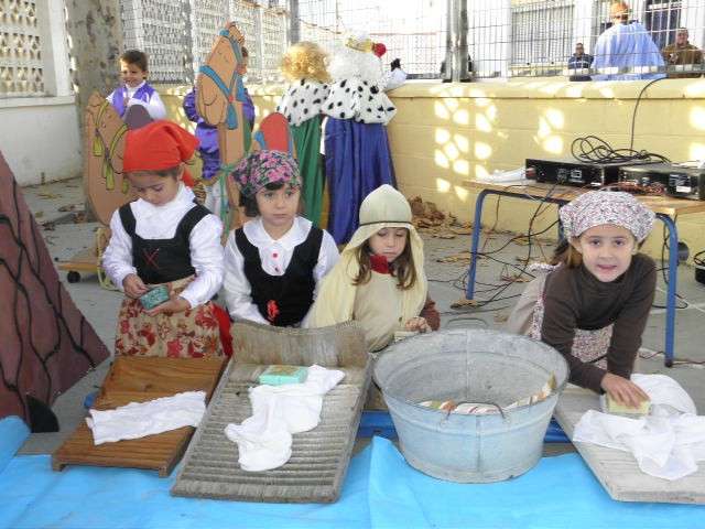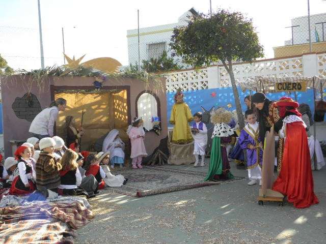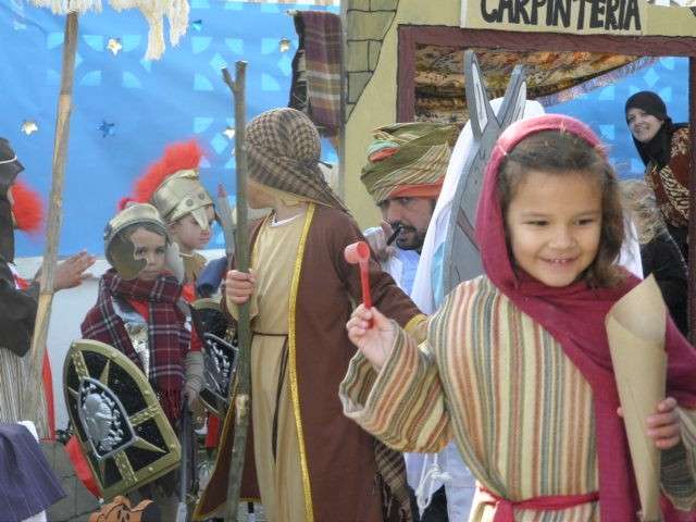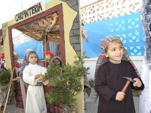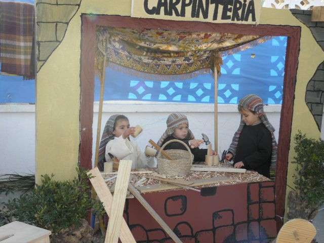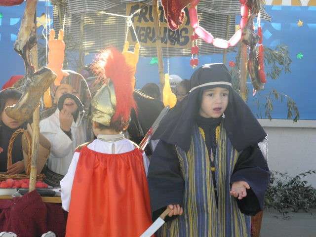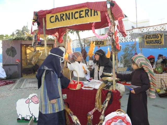 Sin duda, esta puesta en escena no hubiera sido posible sin la ayuda de los padres que se han volcado no solo en la realización de los ropajes acordes a la época, sino en la construcción de tenderetes y puestos que han dado vida a un patio que hoy se ha convertido en un particular Belén del que tanto sus promotores como figurantes, han recibido la enhorabuena.