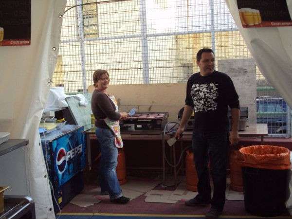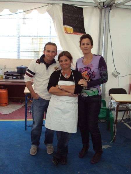 Una velada en la que los padres de alumnos rabajan duro. Algunos en la cocina del bar, otros en la barra y el resto en la tómbola que organizan para recabar fondos.