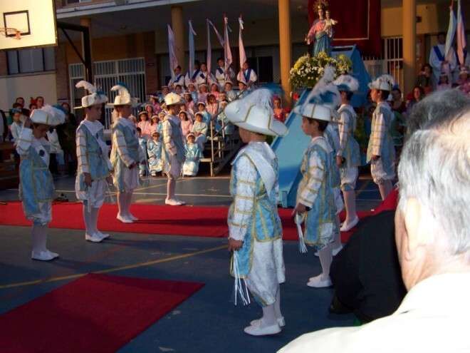 En esta actividad participaron la gran mayoría de los alumnos del colegio, cada uno de una forma. Los había vestidos de monaguillos con banderas esperando a María Auxiliadora, los angelitos que dedicaron sus piropos a la Virgen representados por los alumnos de Infantil y de 1º y 2º de Primaria, los clásicos Seises que bailaron para la anfitriona o los alumnos de la escuela de baile del colegio que dedicaron sus sevillanas a María. A ellos, se les suma la Escolanía Santo Domingo Savio que también cantó durante este acto.