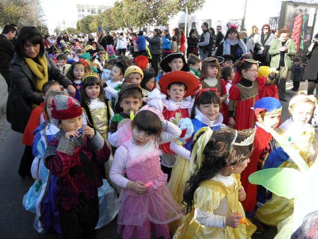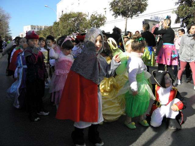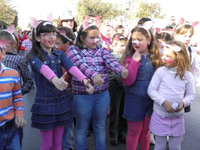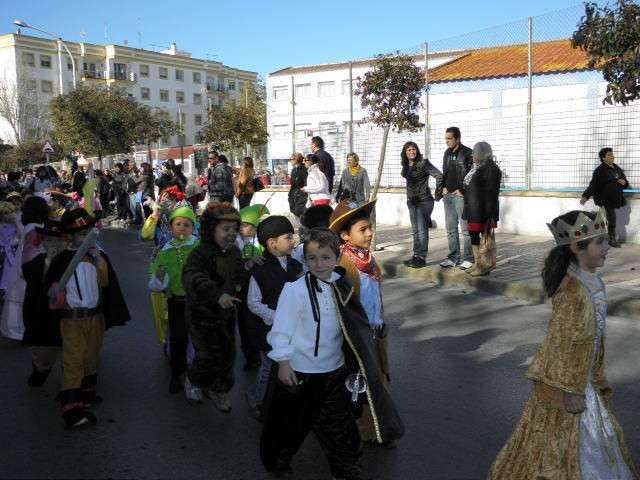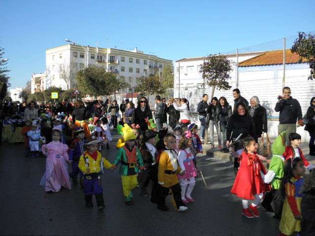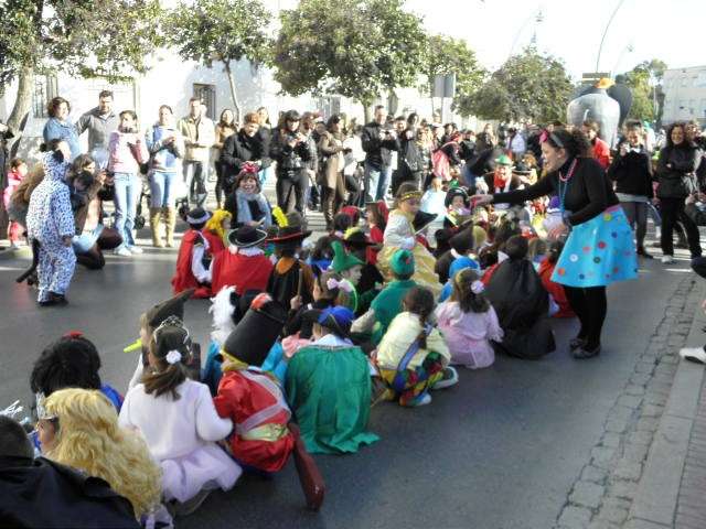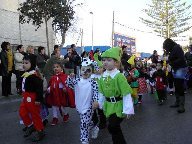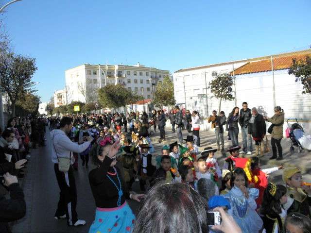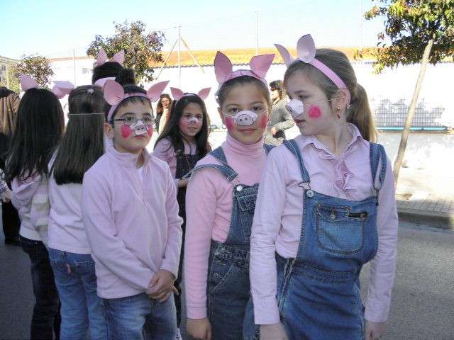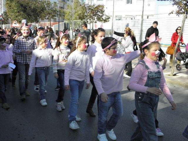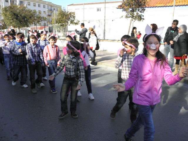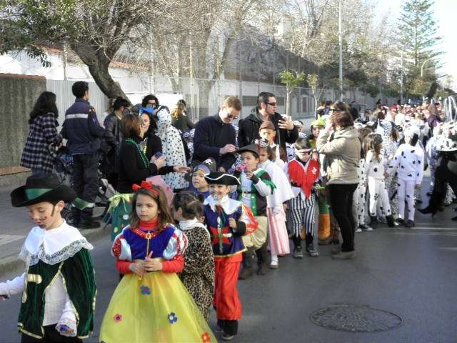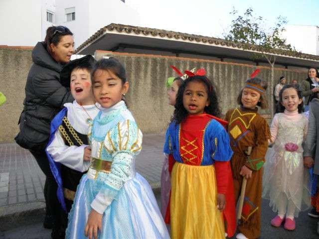 Este año cumplen su décimo aniversario y es evidente que el Carnaval llega a las aulas de este colegio con fuerza. Tanto es así que esta mañana, todo el alumnado, incluido docentes y algunos miembros del AMPA, han protagonizado un pasacalles carnavalesco por las calles colindantes al centro. Durante algo más de media hora, los alrededor de 470 alumnos de Infantil y Primaria que acuden a diario a clases, han vivido la fiesta del Carnaval y con ellos, los padres y madres que no han dudado en esperarlos a pie de calle para animar este cortejo, y de paso, inmortalizar el momento con cámaras en mano.