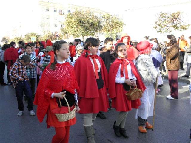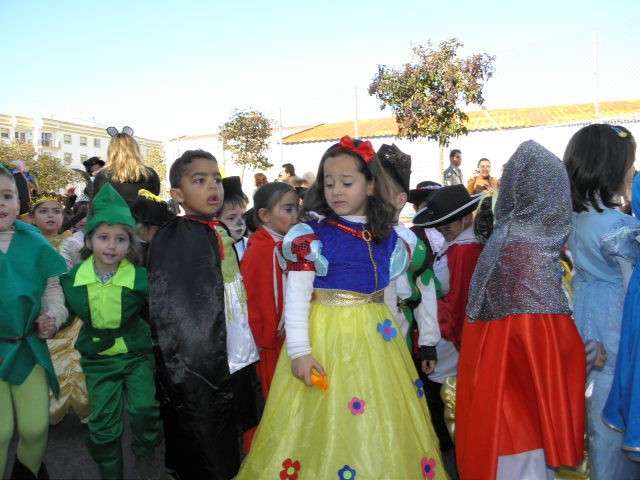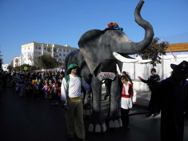 Capitaneados por un gran elefante que abría el cortejo, desde los más pequeños, con 3 años, a los mayores, con 12, han representado personajes de cuentos infantiles muy conocidos por todos. Para una mejor organización y vistosidad del pasacalles, los alumnos de los diferentes cursos han representado a personajes específicos de estas historias infantiles. Así, se ha podido ver a los tres cerditos, a las blancanieves, a las caperucitas roja o los 101 dálmatas. Los más pequeños lucían disfraces más variados donde se han visto ratitas presumidas, Peter Pan, Mickey Mouse, soldaditos de plomo y hadas, entre otros muchos. Un buen elenco de cuentos de ficción que hoy, encarnados en los alumnos del Luis Ponce de León, han disfrutado de un pasacalles antesala del fin de semana de Carnaval más fuerte en la localidad.