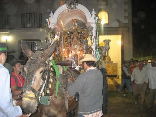 Por lo demás, anoche, los más de 300 romeros que ya están en la aldea, nada más llegar a su lugar de destino pasaron media hora larga cantando ante el Simpecado como señal de júbilo por haber completado la primera parte de su peregrinaje. A partir de ahí, llegó el momento de descargar las carretas y los coches y acomodarse en la casa de hermandad para descansar porque mañana, es el día más importante para los romeros.