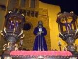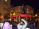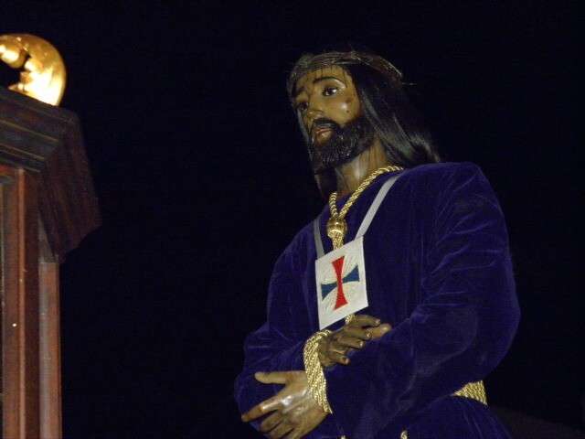 Bajo unas temperaturas bastante aceptables y con cierta estabilidad meteorológica, la noche transcurrió sin incidentes. Nuestro Padre Jesús Cautivo no lucía ningún estreno en su salida de ayer, aunque procesionaba de forma distinta a como lo hizo el año pasado con motivo del 50 aniversario de su primera salida procesional. Llevaba una túnica morada lisa y una corona de espinas de madera elaborada por el imaginero roteño Miguel Ángel Caballero Pérez. Bajo sus pies, un monte de claveles rojos y 24 costaleros que, guiados por José Joaquín Arévalo y Germán Patino junto a su grupo de capatacía, llevaron a este Cristo maniatado por las calles de la localidad con paso firme y solemne.