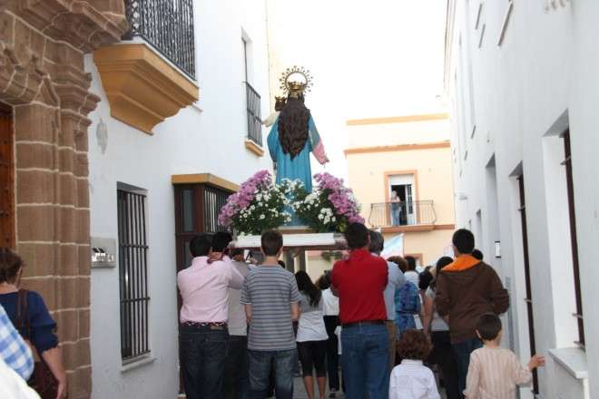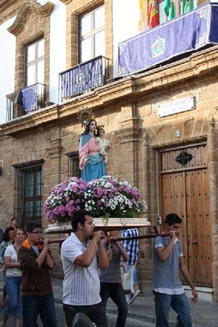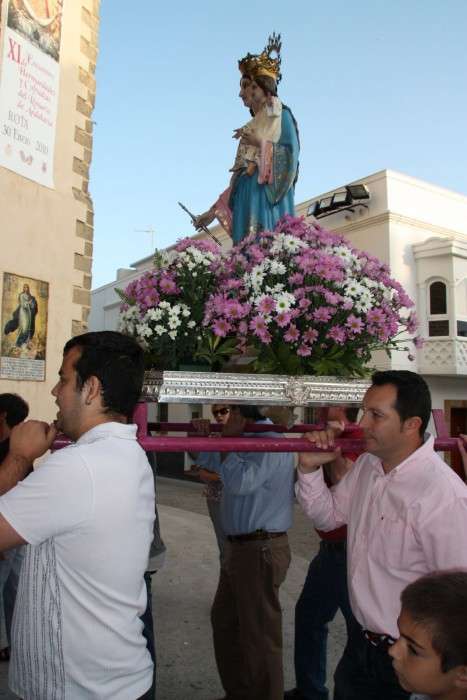 En torno a las ocho de la tarde, la imagen de María Auxiliadora salía del colegio de Nuestra Señora del Rosario portada en su peana por alumnos y padres de alumnos del centro en dirección al paseo marítimo de la Costilla para llegar posteriormente a la iglesia de Nuestra Señora de la O. Una vez allí, se celebró la Misa de Novena en honor a María Auxiliadora que ya está preparada para salir en procesión el próximo lunes. Será a las siete y media de la tarde cuando se abran las puertas del colegio de Nuestra Señora del Rosario para que la Virgen recorra las calles más céntricas de la localidad acompañada por los alumnos de los colegios salesianos de Rota. Como ocurre desde hace algunos años, María Auxiliadora proecesionará junto a las figuras de Santo Domingo Savio y San Juan Bosco.