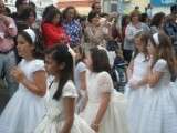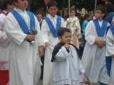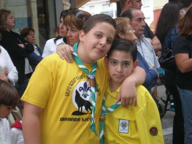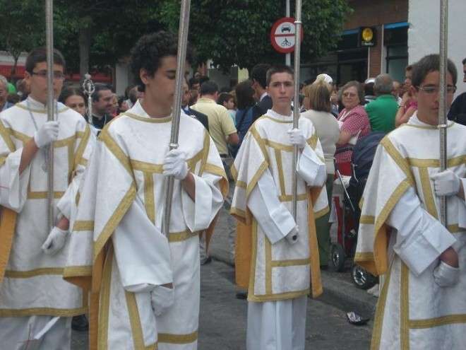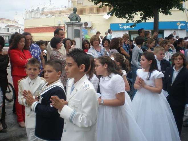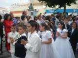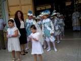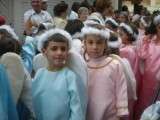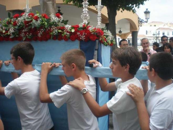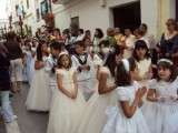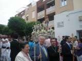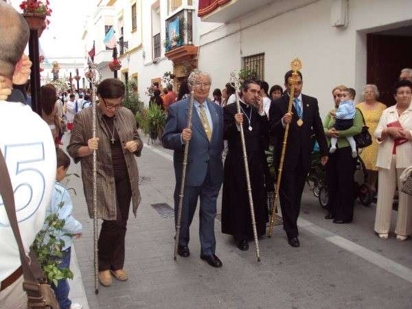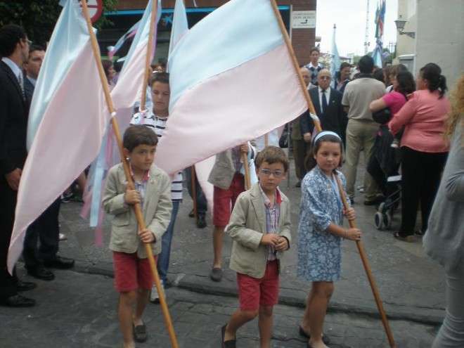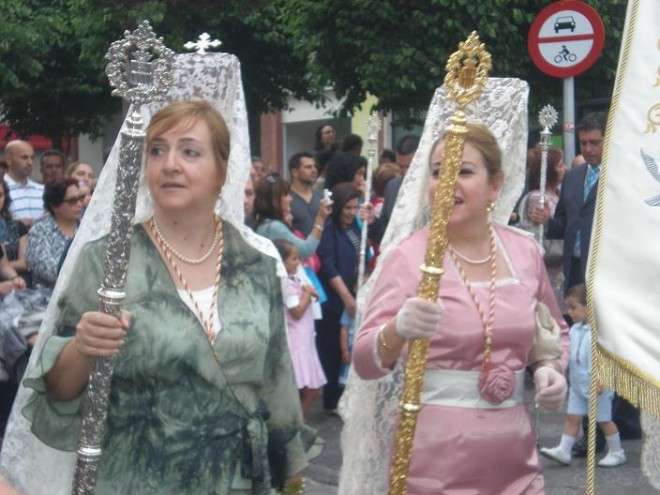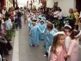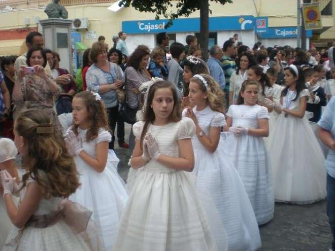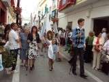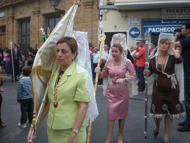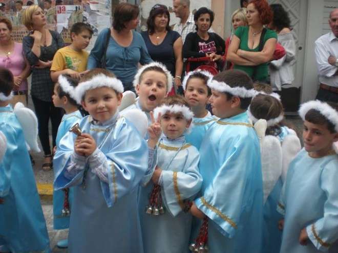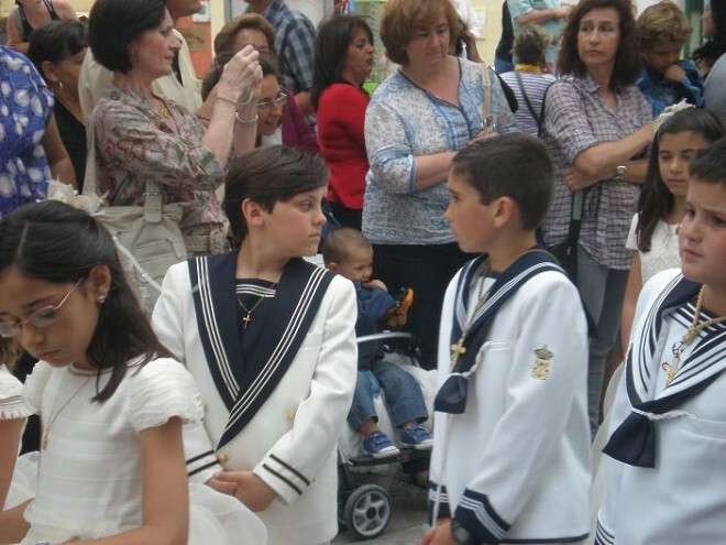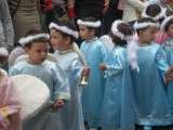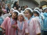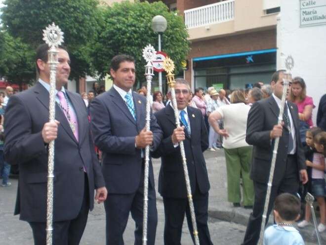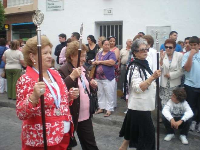 El cortejo lo abrían los pequeños angelitos de los cursos de Infantil y primer ciclo de Primaria de los Salesianos, que haciendo sonar campanitas iban alertando de la llegada de la Virgen por las calles del municipio. En esta misma comitiva se encontraban los niños que este año han recibido su Primera Comunión, también estaban los integrantes del grupo de scouts Santo Domingo Savio, la Archicofradía de Maria Axiliadora del colegio Slesiano, los jóvenes del Movimiento Juvenil Salesiano, antiguos aumnos, una representación de la Asociación de María Auxiliadora de las Salesianas, la junta del AMPA del colegio, el Centro Juvenil Rábeta, la Asociación de Madres Mamá Margarita, profesores , alumnos y mujeres vestidas con la tradicional mantilla española que dieron la nota de color a este largo cortejo.
