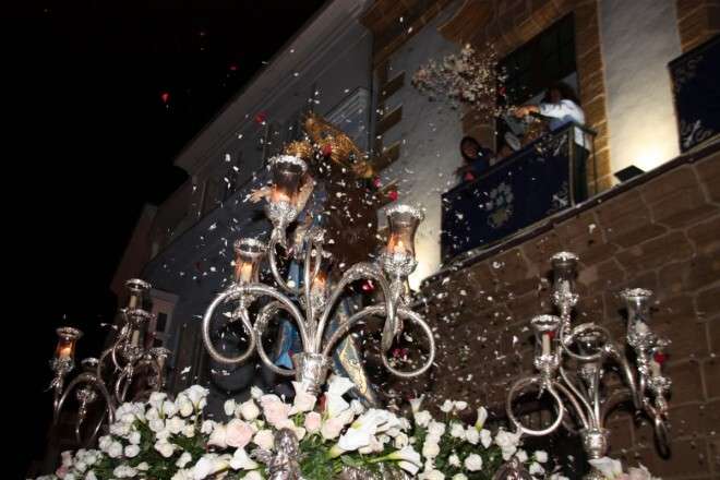Durante todo su recorrido, María Auxiliadora estuvo acompañada por la Banda de Cornetas y Tambores de la Fundación Alcalde Zoilo Ruiz-Mateos y la Banda Municipal de Música Maestro Enrique Galán que la acompañaron hasta las diez de la noche, momento en el que la Virgen volvía de nuevo a su capilla tras haber disfrutado del fervor que le profesan los roteños.