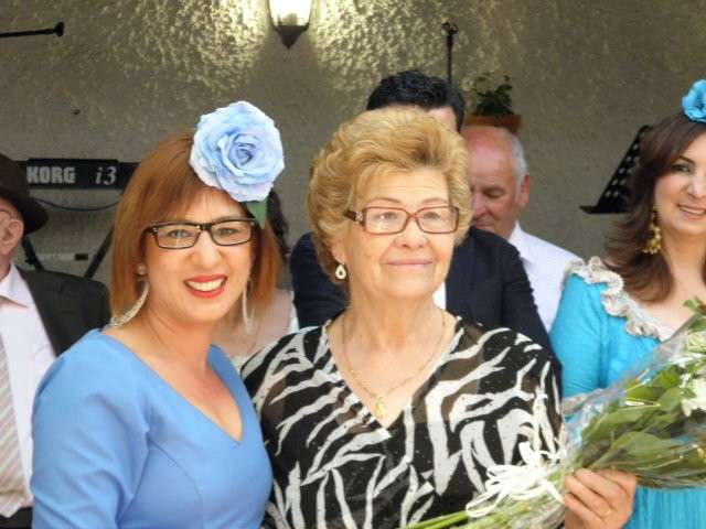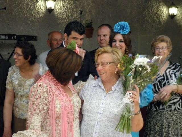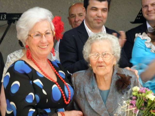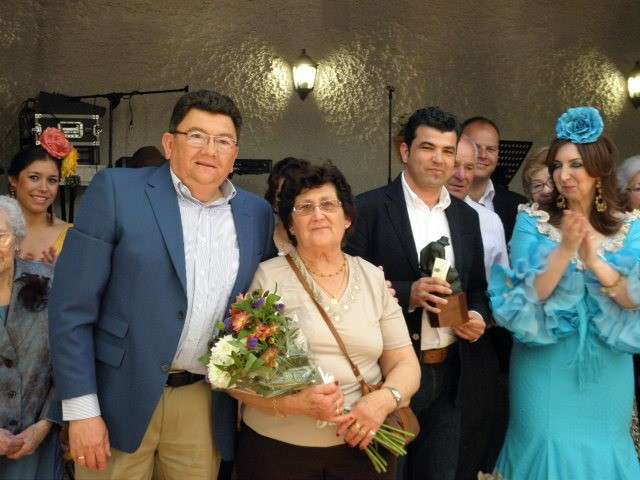 Fue la alcaldesa de Rota, Eva Corrales, la que hizo entrega de la figura de un mayeto al alcalde de la pedanía, Javier Contreras, en señal del homenaje que ayer, último día de feria, rendían a sus paisanos en la distancia. En ese reconocimiento, las cinco mujeres que marcharon de Rota hace más de 50 años, recibían un ramo de flores en señal de agradecimiento.