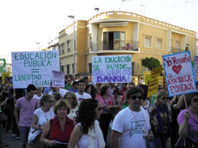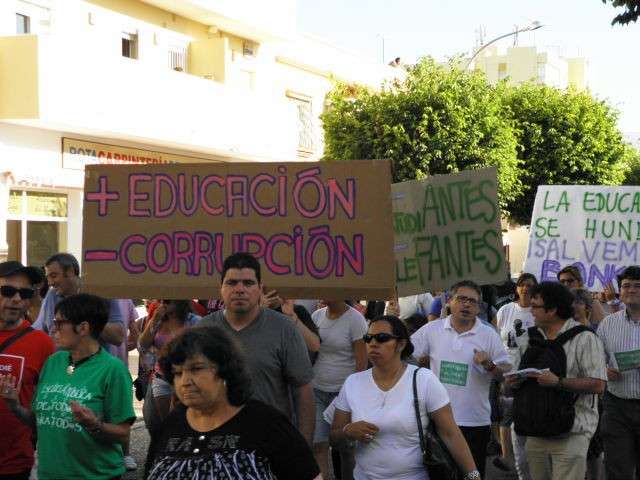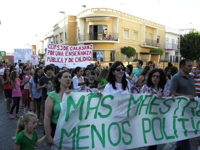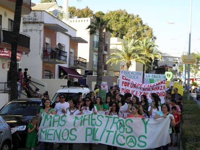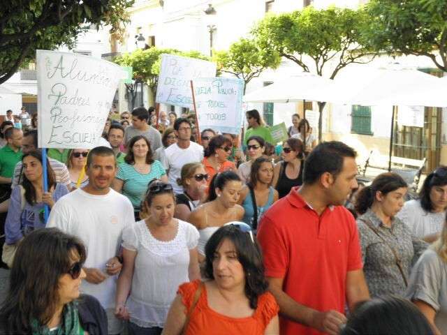 Los políticos estuvieron ayer allí para no tener problemas con el pueblo, a ver si os enteraís. Que TODOS LOS POLÍTICOS (grito) son iguales, te dan una cara pero cuando te das la vuelta hacen lo que les da la gana. Y por eso estaban ayer alli, para quedar bien con el pueblo. La señora alcaldesa no estaría porque ella paga por la educación de sus decescientes, ya que los manda a colegios privados y por eso le da igual que los demás tengamos que pagar por la educación. Los señores del PSOE estaban allí porque así podían decir en un pleno contra el PP que ellos estuvieron allí en contra de los recortes, cuando su partido a nivel nacional también la cagó y mucho.