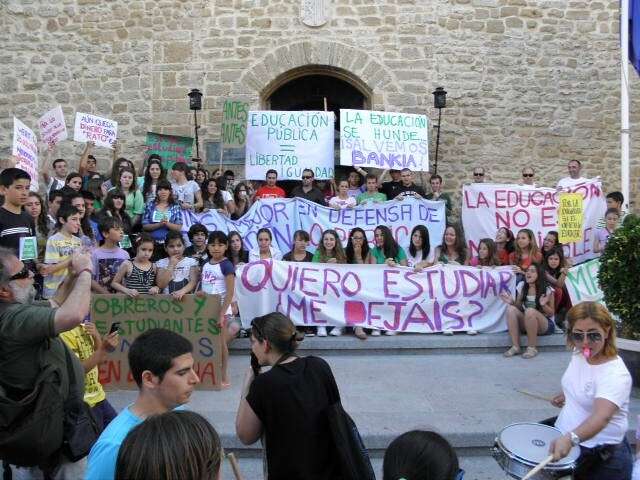[Img #15261]Tras esta profesora, una alumna del IES Arroyo Hondo tomaba la palabra. En este caso, el discurso iba más enfocado al alcance que tendrán los recortes para los alumnos y de hecho, enumeró algunos de ellos como ejemplos de la pérdida de calidad que entienden que se hará realidad si las medidas del Gobierno siguen adelante.  El aumento del número máximo de alumnos por aula; el aumento del horario lectivo del profesorado que tendrá que atender a más alumnos y durante más horas; la no cobertura de bajas del profesorado por menos de diez días; el despido y no contratación de los docentes para el próximo curso; la desaparición de la oferta educativa ya que no se ofertarán modalidades que tengan poca demanda; la desaparición de algunos programas educativos destinados a alumnos con problemas de aprendizaje; el descenso de becas para personas con menos recursos; o el aumento de tasas para universitarios y ciclos superiores, son solo algunas de las medidas que ayer se han relatado. A ellas, esta alumna sumaba la inversión en recursos innecesarios en tiempos de bonanza y aunque son conscientes de que estamos en crisis, los estudiantes entienden que se puede gestionar mejor sin que los recortes sean tan drásticos en educación. Para ello, pidieron ser parte activa en los debates en los que se traten estos asuntos que les afecta directamente. "Hemos defendido muchas veces nuestros derechos y ahora lo hacemos porque no podemos permitir que se juegue con nuestro futuro".