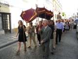 A esa hora de la mañana, pocos ciudadanos estaban por las inmediaciones de la parroquia del Carmen, aunque la Santa Custodia ha estado acompañada por un buen número de feligreses que no la han dejado sola y han mantenido la tradición que iniciaron en 2002 de sacar justo a la semana siguiente de la salida del Corpus Christi, este Corpus Chico que cumple con un culto más dedicado a Cristo y que para los fieles de la parroquia del Carmen es una cita importante.
