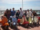 Partiendo desde Sanlúcar en torno a las once y media de la mañana, las 85 motos participantes llegaron a Rota sobre el mediodía. Escoltadas por la policía local, el singular cortejo de vespas y lambrettas llegaba al muelle deportivo para hacer una parada, tomar un aperitivo y continuar con el itinerario previsto.