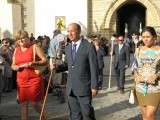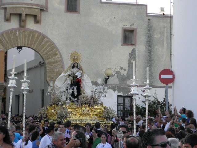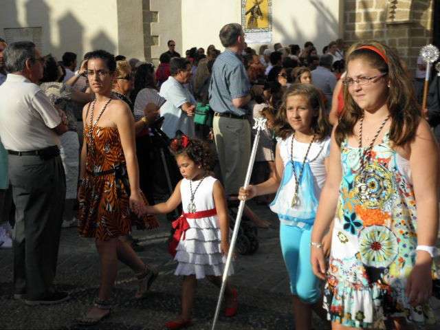 Sobre las siete y media de la tarde, tras la eucaristía celebrada en la parroquia de Nuestra Señora de la O, se iniciaba la procesión de la virgen del Carmen. Por una plaza Bartolomé Pérez bastante concurrida, comenzaba a desfilar el cortejo, en este caso compuesto por casi medio centenar de personas entre los que se encontraban el cuerpo de acólitos, representantes de la junta de gobierno de la hermandad, que el pasado sábado salía elegida de unas nuevas elecciones con Rosa María Sánchez Caballero como hermana mayor, miembros del equipo de gobierno, con la alcaldesa Eva Corrales a la cabeza, así como hermanos de la Hermandad del Carmen portando sus insignias, entre ellos varios jóvenes. Junto a esta comitiva, un buen grupo de hermanas y cofrades seguían al paso de una virgen que dio bastante vida al centro. De hecho, el casco histórico se mostró bastante concurrido y con mucho ambiente durante las horas en las que se prolongó esta salida.