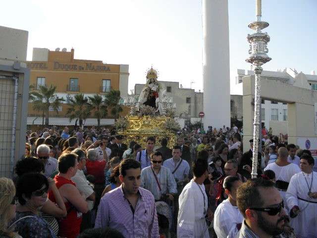 Quizás el fuerte viento de levante que soplaba durante todo el día, que hizo que la hermandad, en la celebración de un cabildo extraordinario decidiera no llevar a cabo el paseo por la playa de la Costilla, deslució esta salida procesional, que sin embargo, ganó adeptos por las calles del pueblo. Aún así, y para no dejar de lado la tradición de que la virgen del Carmen bendiga las aguas en las que trabajan los marineros roteños y rezar una oración en memoria de los fallecidos, la junta de gobierno de la hermandad decidió acortar la salida marítima limitándola exclusivamente a una vuelta hasta el pantalán, entre el puerto deportivo y pesquero. Por ello, cuando el cortejo llegó hasta el muelle y se disolvió, fue la cuadrilla de costaleros, guiada por el capataz José Bedoya Cerpa, la que se encargó del complicado trabajo de bajar a la virgen del paso y trasladarla en su peana hasta la embarcación "Hermanos Corbeto", la que tradicionalmente la pasea en su salida marítima cada verano. En este caso, y con una previsiones negativas que hacían imposible barajar la posibilidad de que la patrona de los marineros realizara su recorrido por las aguas de la costa roteña con normalidad, la procesión marítima fue más corta aunque igual de seguida por los cientos de ciudadanos que se apostaron en las inmediaciones del muelle roteño a la espera de ver a Nuestra Señora del Carmen paseando por el mar.