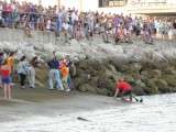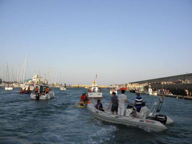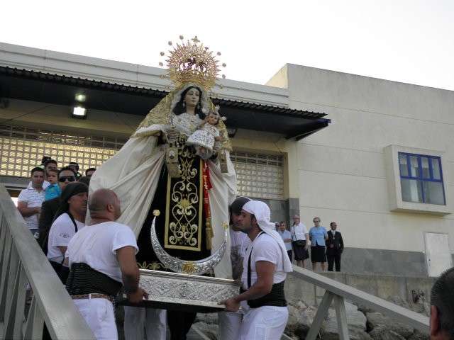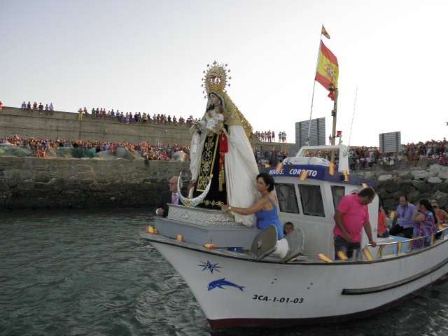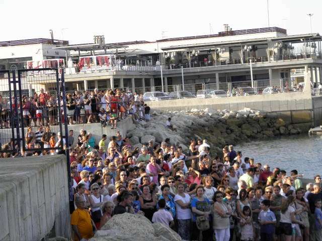 Como anécdota hay que destacar la caída de varios ciudadanos, al menos una decena de ellos, que fueron de forma progresiva resbalando por la rampa de entrada de embarcaciones del muelle pesquero mientras intentaban ocupar la primera fila y ver desfilar a la patrona de los marineros por el mar. Minutos que distrajo por un momento la atención de los presentes mientras la virgen iniciaba su embarque.