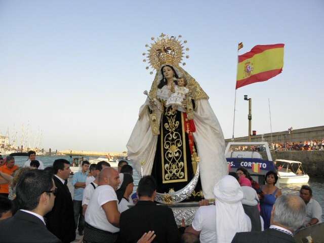 En este caso, tampoco la pudo acompañar el barco de Marina Española que normalmente la sigue en su recorrido marítimo, ni las embarcaciones pesqueras y deportivas que aunque preparadas y engalanadas a un lado del muelle, tuvieron que quedar atracadas por cuestiones de seguridad.