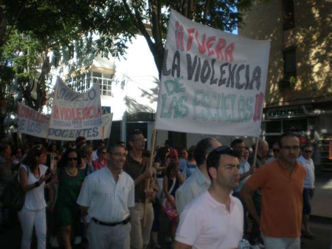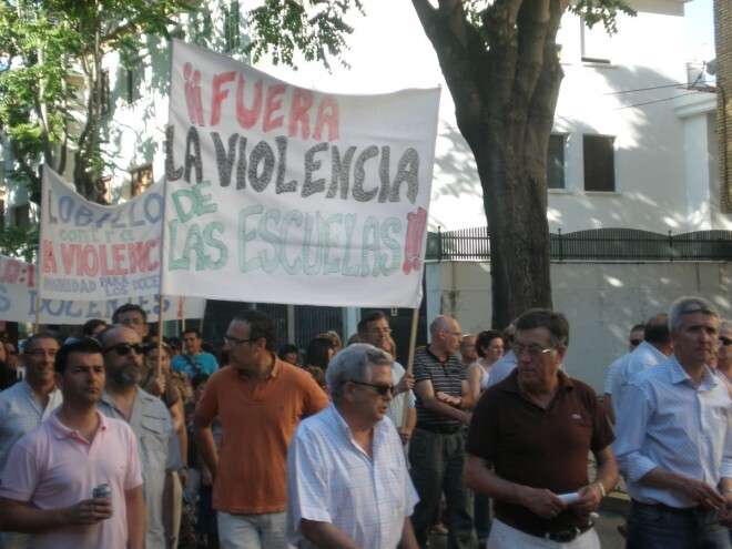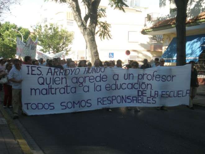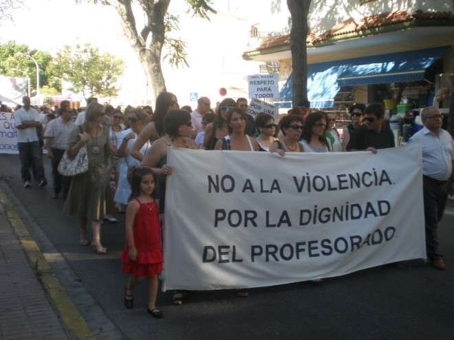 Una manifestación que surgía con motivo de la agresión que un profesor de este centro sufría el pasado 15 de abril por parte del padre de un alumno simplemente por el hecho, según el director, de haber llamado la atención a un estudiante que estaba peleando con otro en el recreo.