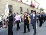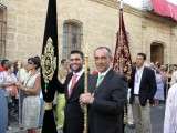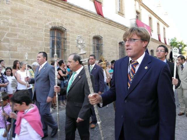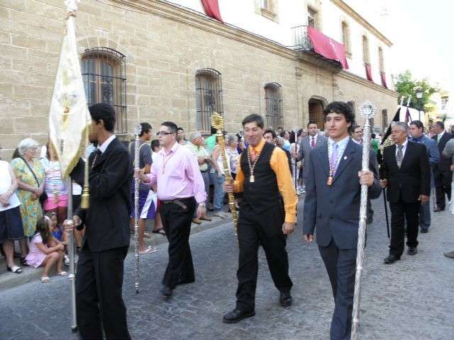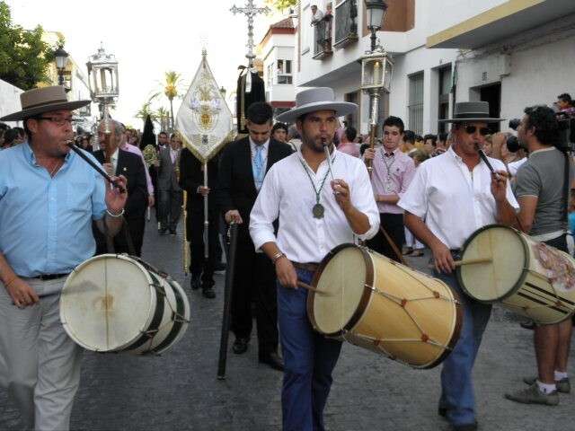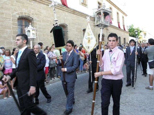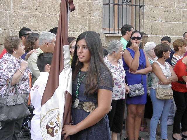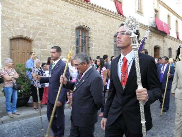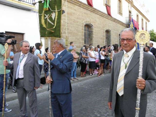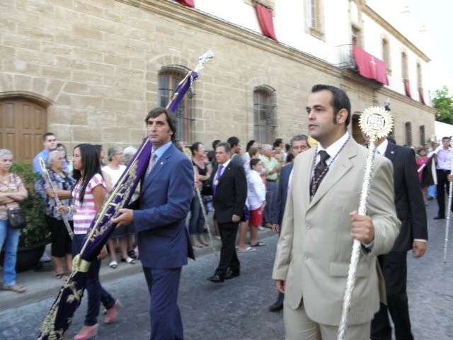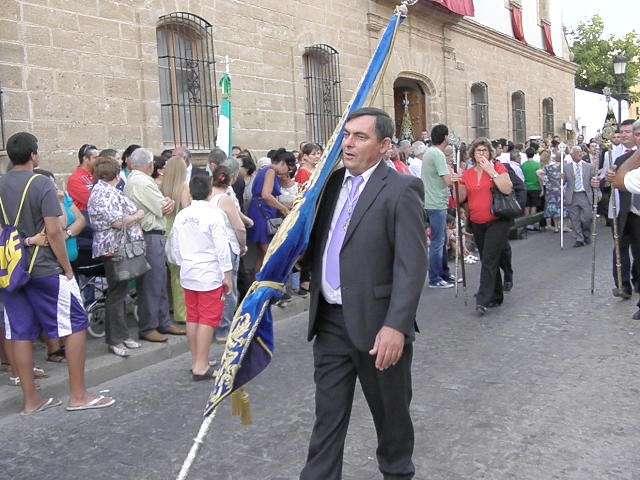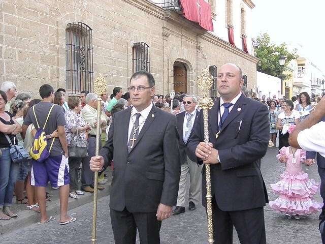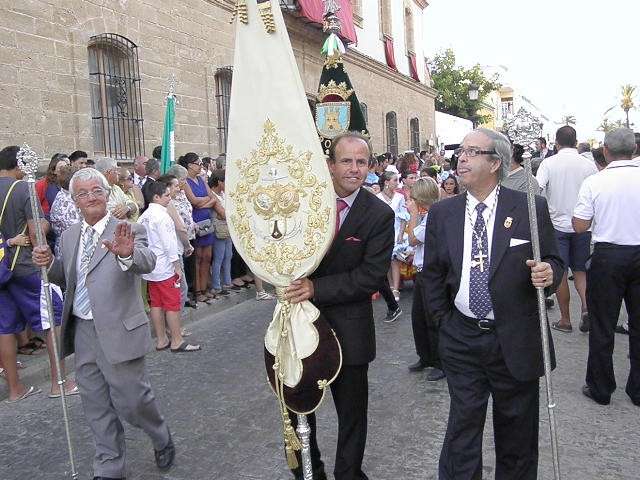 Una vez en la calle, representantes de todas las hermandades de Penitencia y Gloria de la villa, así como hermandades rocieras de la provincia de Cádiz que fueron invitadas para la ocasión, desfilaron ordenadamente luciendo sus correspondientes estandartes portados en la mayoría de los casos por los hermanos mayores y miembros de las juntas de gobierno. Las buenas temperaturas acompañaban y eso hizo que el cortejo estuviera muy bien acompañado desde el principio.