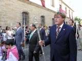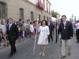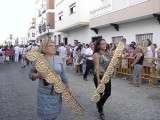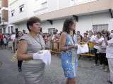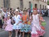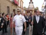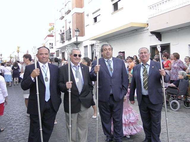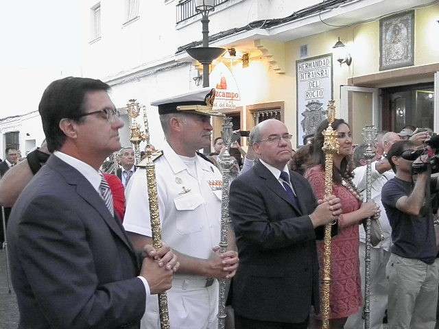 Autoridades civiles y militares, así como un grupo de niños que lucían el tradicional traje andaluz, se sumaban al cortejo en el que también, por primera vez, un grupo de mujeres lucían los enseres de la Virgen, y los cuatro hermanos de la Hermandad del Rocío que han tenido esta responsabilidad en los últimos años.