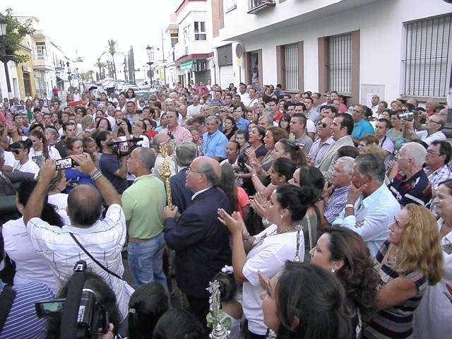 Esta cita, de especial importancia para la hermandad, que se enmarca en el Año Santo Jubilar Mariano del Rocío que se iniciaba el pasado 15 de agosto, contó con el respaldo de muchos ciudadanos que acompañaron a la Virgen en su salida procesional desde el principio. De hecho, desde las ocho de la tarde, hora prevista para iniciar el recorrido, los alrededores de la parroquia de Nuestra Señora del Carmen concentraban a un buen número de personas que esperaron pacientemente el retraso con el que se inició la marcha del cortejo, pasadas las ocho y media de la tarde.