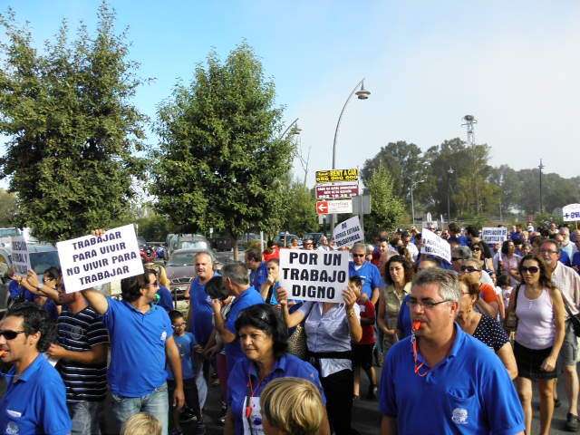 Con esta manifestación, al igual que vienen haciendo desde el pasado viernes 24 de agosto cuando comenzaron la huelga ante la ruptura en las negociaciones del nuevo convenio colectivo, la plantilla ha pedido a la empresa, CAV Europa, que no se aproveche de la reforma laboral para mermar sus derechos como trabajadores. El principal mensaje que han querido trasladar hoy ha sido que tras casi 40 años de presencia de la Base en Rota no ha habido ningún problema con los empleados, “entonces ¿qué es lo que pasa ahora”, han lamentado reiterando las "mentiras" que está vertiendo la empresa en los medios.