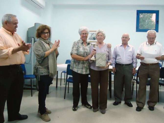 La delegada municipal del Mayor, María de los Ángeles Sánchez, junto a la presidenta de la Junta del Mayor, Josefa Pérez, entregaron los trofeos de este campeonato a los ganadores de esta competición en la que se dieron cita cerca de 20 mayores.
