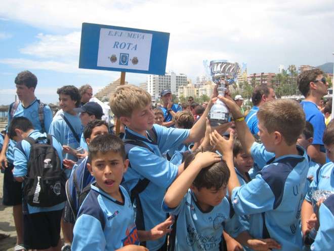 El personal técnico de esta entidad deportiva de Rota junto a padres y madres de los alumnos viajaron hasta la costa malagueña para tomar parte de este evento en el que participan más de cien escuelas de toda Andalucía. Este torneo es una importante actividad que cuenta con once años de trayectoria formando parte del programa de la EFI y que supone el colofón a la temporada de la escuela de fútbol. Además, durante los dos días que están fuera, la dirección de esta entidad se encargan de que los jóvenes deportistas fomenten la convivencia así como valores sociales y deportivos por los que apuesta la EFI en cada programa.