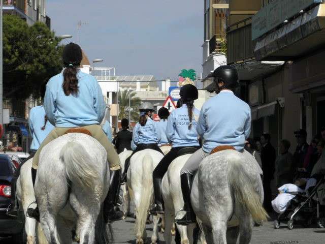 Esta es una jornada importante para los caballistas de la asociación "La Posada" ya que celebran un año más desde que se constituyeran como entidad para intentar fomentar el amor a los caballos en la localidad. Hoy, por la amenaza de lluvia quizás ha habido menos participación que en ediciones anteriores, aunque eso no ha quitado para darle vistosidad a un desfile que aunque rápido, ha captado la mirada de muchos roteños y turistas que a esas horas paseaban por las calles de la localidad.