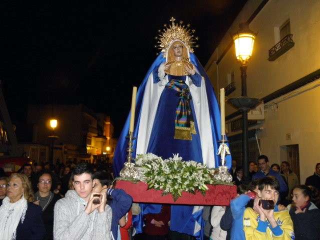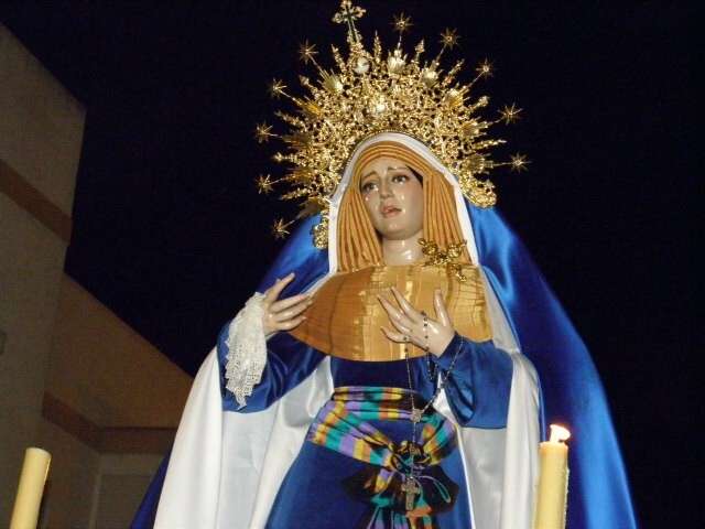 A una semana de que se inicie la Semana Santa y los roteños puedan disfrutar de la salida procesional de las diferentes imágenes titulares de las seis hermandades de penitencia que tiene Rota, los vecinos de la localidad pudieron disfrutar anoche de la salida extraordinaria de Nuestra Señora la Esperanza del Calvario. La talla de esta virgen, titular de la Hermandad del Amor que cada Lunes Santo realiza su estación de penitencia, recorría ayer las calles de la barriada de El Molino, zona del municipio que ha visto crecer a esta cofradía, presidiendo el rezo de un vía matris al que siguieron muchos fieles y cofrades.