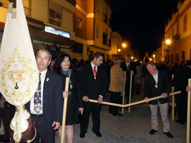 En torno a las diez de la noche, la Esperanza del Calvario volvía a su capilla con la alegría de la hermandad por la respuesta de los fieles con este vía matris, principalmente de los jóvenes que demostraron ayer la buena cantera cofrade de la que presume Rota.