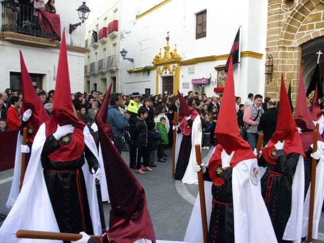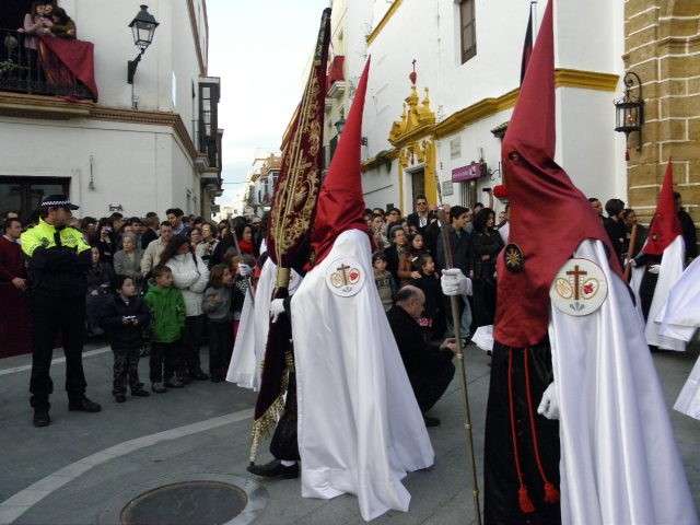 Los roteños y turistas que en estos días pasan sus vacaciones de Semana Santa en la localidad se han volcado con la salida procesional de la Hermandad de Nuestra Señora de los Dolores y el Santísimo Cristo de la Caridad que en esta tarde de Jueves Santo de 2013, por fin ha podido iniciar su estación de penitencia sin amenazas de lluvia, lo que indica que también podrá culminarla a las doce y media de la noche con total normalidad.