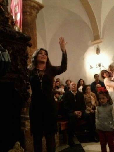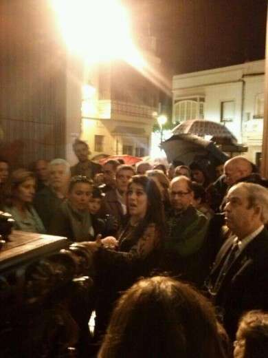 En fila, los ciudadanos han ido desfilando delante de los pasos, inmortalizando el momento con móviles y cámaras de fotos, y rezando ante los titulares de la Hermandad de la Veracruz. Un poco antes de las diez de la noche, cuando la lluvia comenzaba a apretar y no parar, en el interior de la capilla de San Roque se vivían unos momentos especialmente emotivos. Una saetera, Tamara Alegre, de Cáceres, dedicaba una saeta a este cristo crucificado y a la virgen de las Angustias. Su potente voz ha puesto los pelos de punta a quienes estaban en el interior de la capilla y a los que, cubiertos con paraguas y a paso ligero, pasaban por la plaza de San Roque.