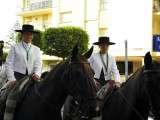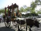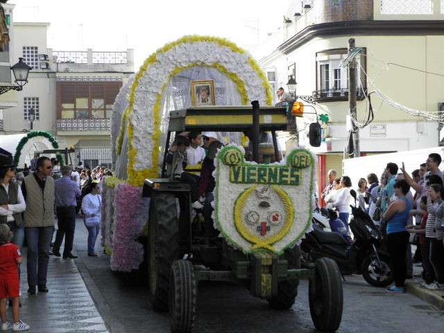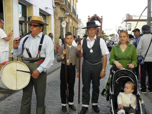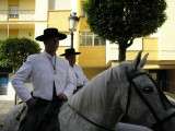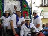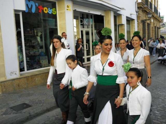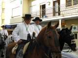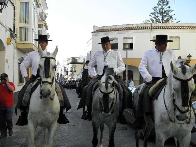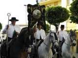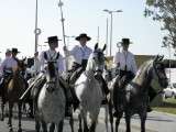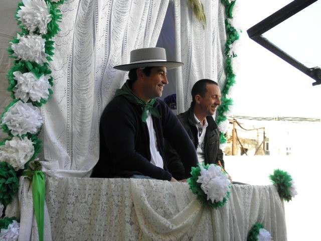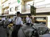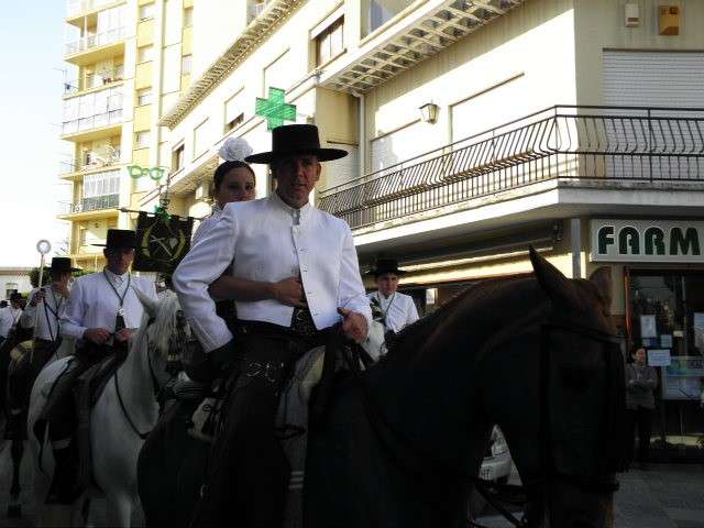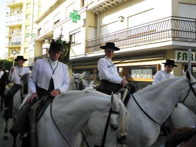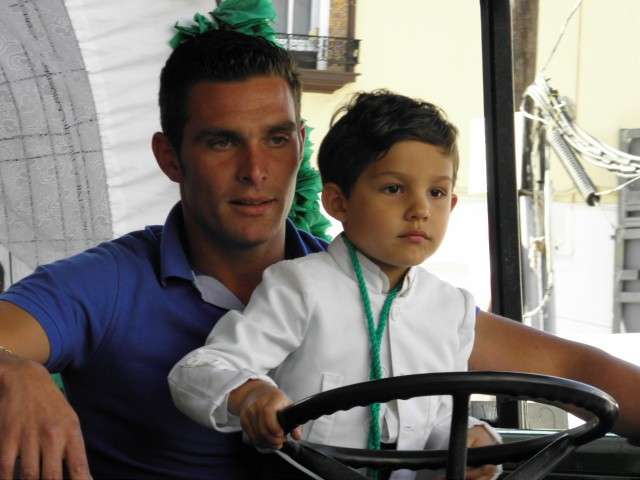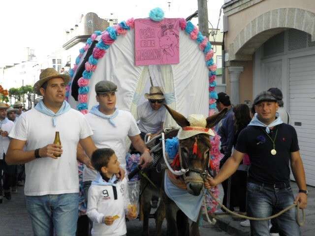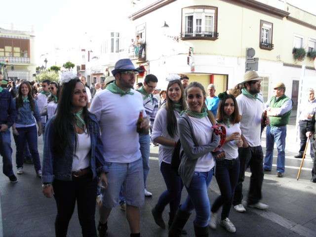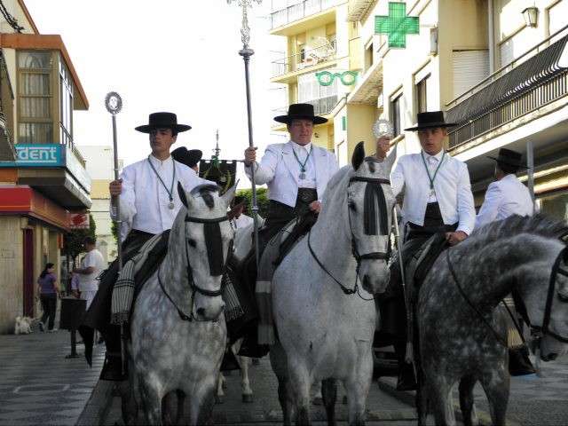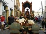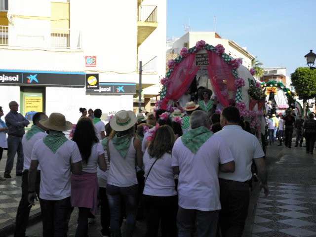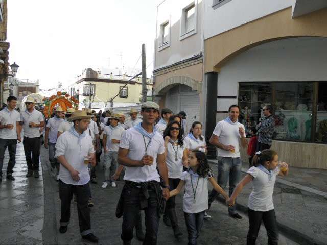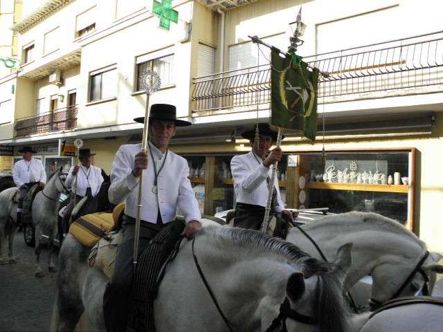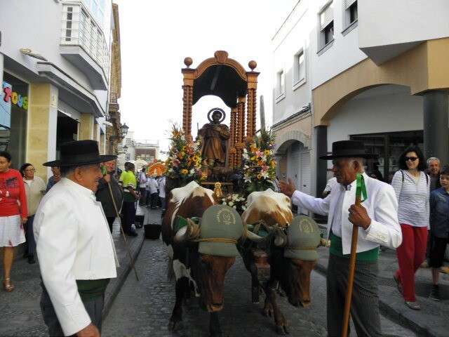 Con unas estupendas temperaturas, el patrón de los agricultores partía con algo de retraso, bien pasadas las nueve de la mañana, desde su capilla en la parroquia de Nuestra Señora de la O hasta los pinares de la Guillén, ubicados a la altura del recinto ferial. Un recorrido que el santo hizo acompañado de un amplio cortejo de caballistas, más de medio centenar, mujeres andando y más de una decena de carretas de grupos de amigos y peñas que dieron desde el primer momento colorido y mucho ambiente a esta salida que siempre está marcada por la ausencia de incidentes, el ambiente familiar, el cante y el baile.