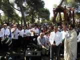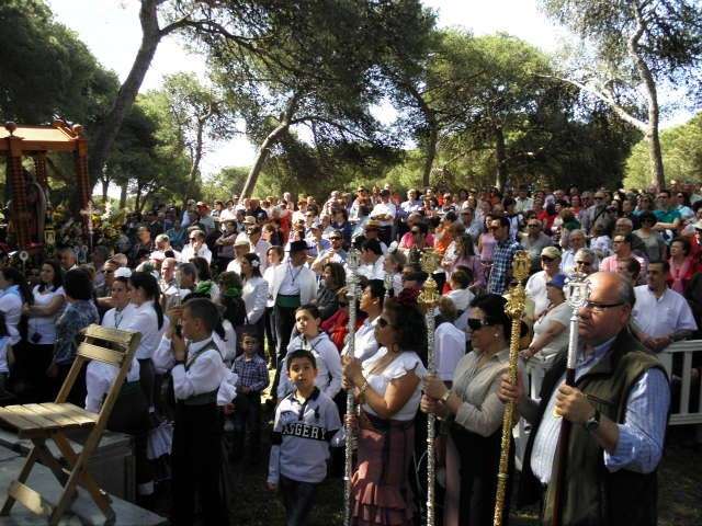 La actuación de los Ecos del Rocío fue sin duda un buen enganche para muchos de los romeros y ciudadanos en general que asistieron a la misa que se prolongó en una hora y que concluyó con sevillanas de este grupo y el canto del himno del patrón de los agricultores. Algo que hizo que desde primera hora, los pinos estuvieran llenos de gente.