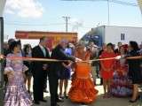 Mujeres vestidas de flamenca haciendo honor a su día en la feria y otros tantos ciudadanos han acudido esta mañana al acto institucional de inauguración oficial de esta fiesta. La Corporación municipal, autoridades civiles y militares han presidido este acto en el que la alcaldesa de Rota, Eva Corrales, la teniente de alcalde Montemayor Laynez, el delegado de Fiestas, Óscar Curtido, y el almirante de la Flota de la Base Naval, Santiago Bolívar, han sido los encargados de subir las banderas de Rota, Andalucía, España y Unión Europea que previamente portaban la dama mayor del Rosario, María Rosa Armario Izquierdo, la Sirena del Carnaval, Marta Rodríguez Sánchez, la dama del Rosario María del Carmen Márquez Álvarez, y la ninfa  Araceli Puyana Gutiérrez.