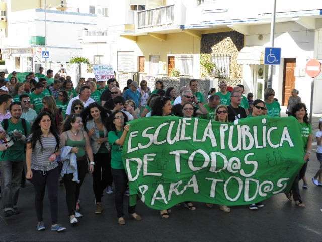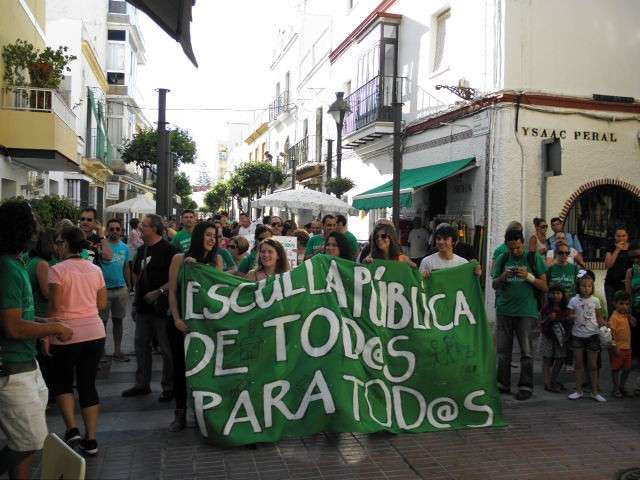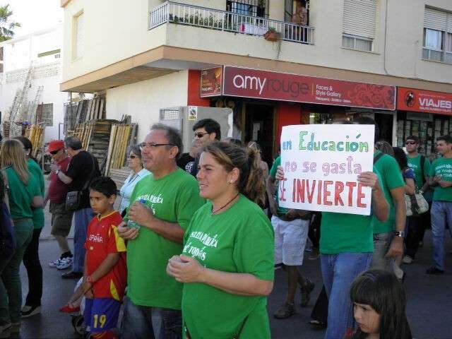 Aunque probablemente no sea la última manifestación o protesta que protagonice la comunidad educativa, la de ayer sí fue al menos la última de este curso escolar. Sin embargo, por razones varias que esgrimían desde la organización de la Marea Verde de Rota, -evaluaciones, fiestas fin de curso, falta de comunicación-, la asistencia a esta cita no fue masiva, ni mucho menos, alrededor de cien personas entre padres, madres, alumnos, profesores, partidos políticos y ciudadanos en general se reunieron para ir detrás de la pancarta de cabecera en la que como siempre, se leía "Educación pública de todos, para todos".