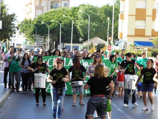 A lo largo de su recorrido, desde el colegio Maestro Eduardo Lobillo, de donde salieron a las seis y media de la tarde, hasta la llegada al Palacio Municipal Castillo de Luna, sede del Ayuntamiento, los manifestantes intentaban hacer ruido para que la ciudadanía les escuchara que están en contra de los recortes, de la Ley Wert y de todo lo que atenta contra la escuela pública. Sin duda, especial protagonismo tuvieron en esta manifestación los miembros de la batukada "Caipiriña" del colegio Luis Ponce de León, que abrían la comitiva a ritmo de percusión y que hicieron de la protesta una fiesta. Fue la única forma de conseguir no pasar desapercibido porque siendo sinceros, los manifestantes estaban algo parados y apenas corearon unas cuantas consignas durante el recorrido, principalmente por la zona más céntrica donde algo más de público presenció la movilización y se vinieron algo más arriba.
