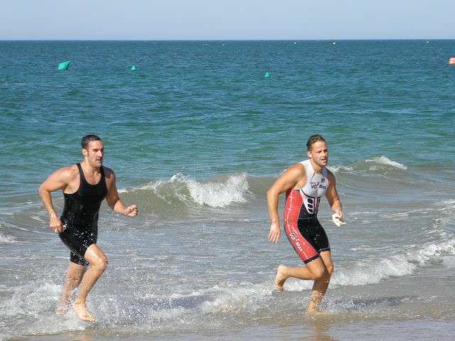 Tras los calentamientos previos necesarios antes de cualquier carrera, los 53 equipos inscritos se han ido hasta la línea de salida, situada a pocos metros de la orilla, para iniciar los 500 metros de natación y los 2 kilómetros de carrera que cada uno de los cuatro componentes de cada equipo tenía que realizar. El viente de levante ha hecho especialmente duro el trayecto en el agua ya que los nadadores han tenido que luchar a contracorriente demorándose algo más en el tiempo las marcas previstas. Para llegar como clasificado era imprescindible que los cuatro integrantes de un mismo equipo concluyeran el circuito completo, siendo el equipo ganador aquel cuyo último miembro entrara antes en meta.