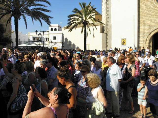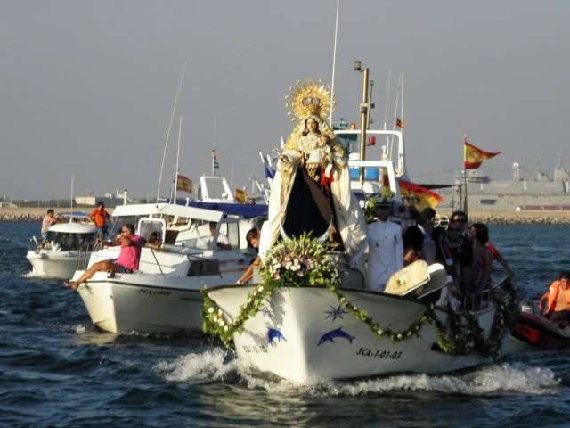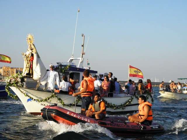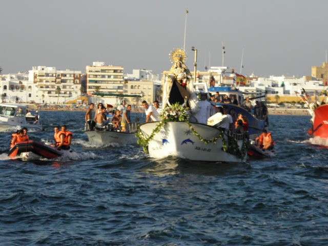 Muchos turistas y roteños acompañaron a la patrona de los marineros en su salida procesional de cada 16 de julio que este año se adelantaba una hora, lo que provocó que tanto en la misa, que se celebró a las seis de la tarde, como al inicio del recorrido, en torno a las siete, los presentes soportaran una sensación de calor bastante acentuada. Fue precisamente estas buenas temperaturas y el viento muy leve el que permitió también que la Virgen del Carmen pudiera realizar su paseo por la costa roteña, cosa que el año pasado no fue posible por el fuerte levante que soplaba.