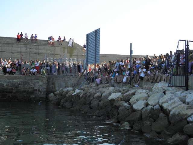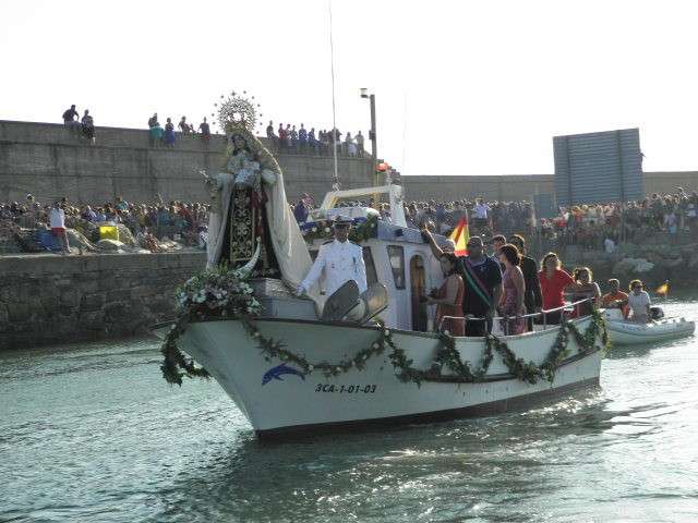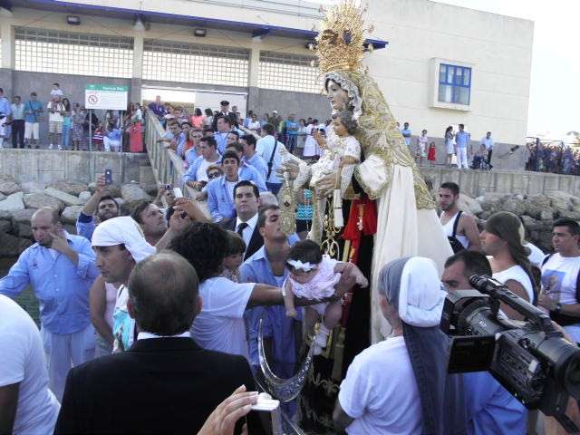 Tanto en el momento de su partida como a la llegada, cientos de ciudadanos la esperaban en las inmediaciones del puerto para verla de cerca y muchos esperaron pacientemente para volver a ver a la Virgen del Carmen subir a su paso e iniciar la segunda parte de su recorrido por las calles de la localidad. La Reina de los Mares lucía un broche de plata en forma de ancla regalado por el pregonero del Carmen de este año, Francisco José Cos Jiménez, que le entregó el día de su pregón.
