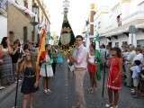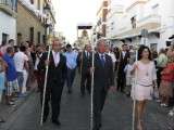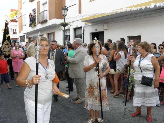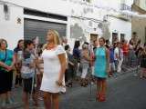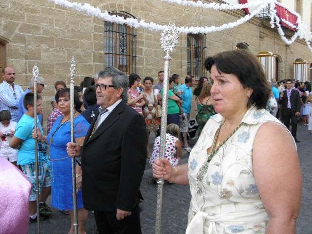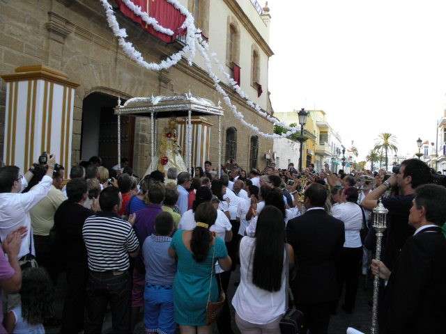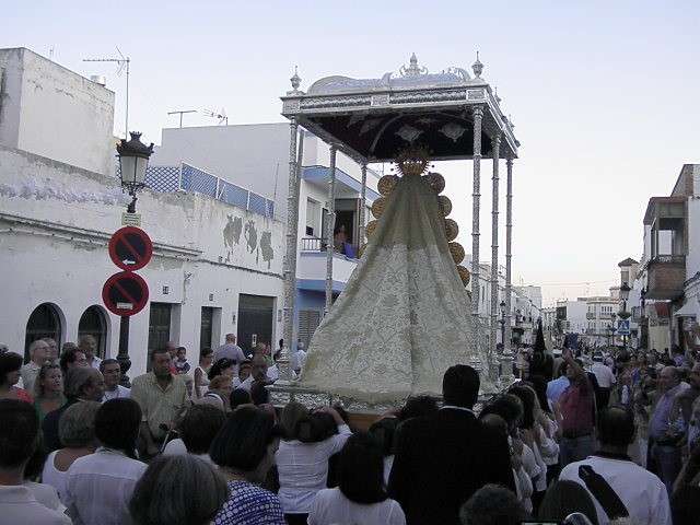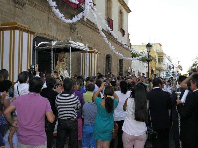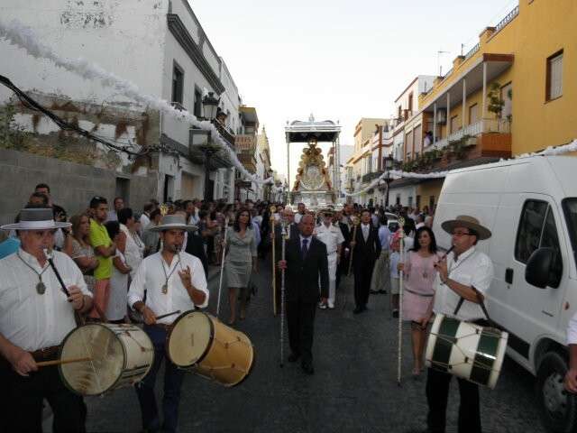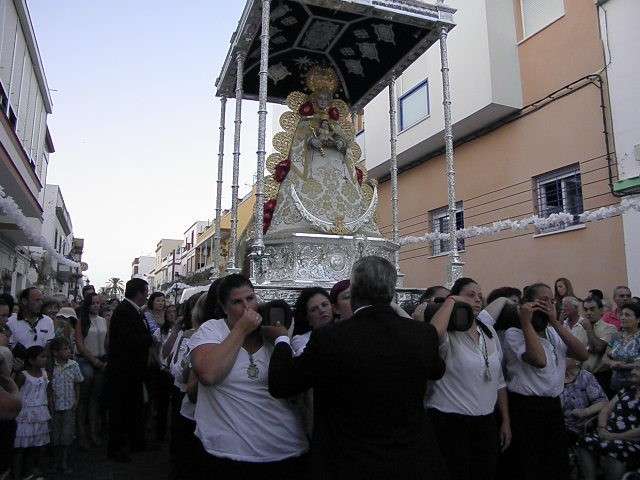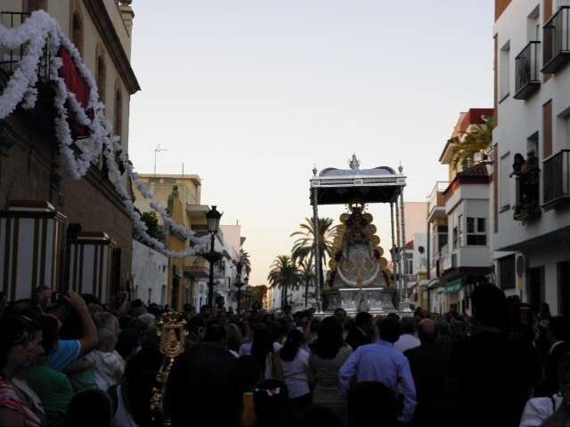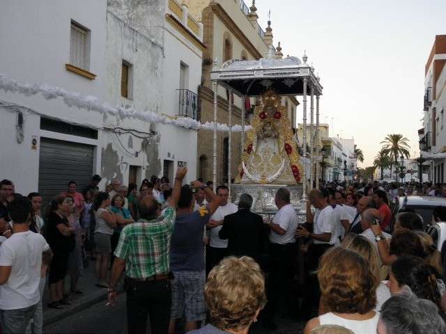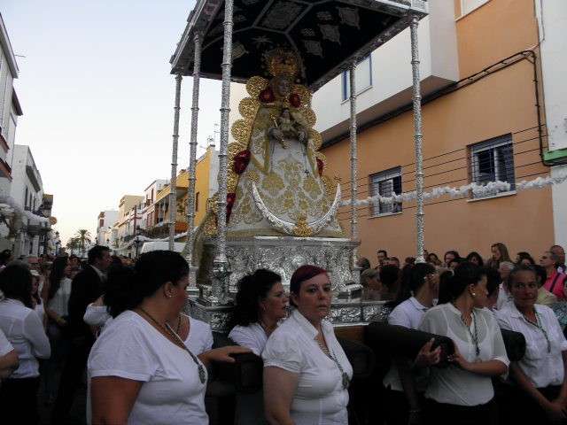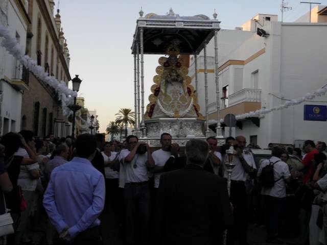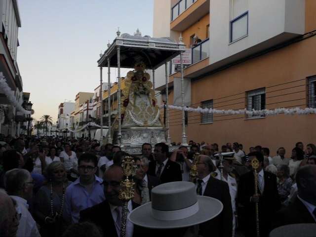 A partir de ahí, con el cortejo organizado, la gente en la calle y el sol cayendo, lo que hizo más agradable en temperaturas el resto de recorrido, la patrona de Almonte enfiló las calles del casco histórico de la villa. Fueron muchos los turistas y roteños los que disfrutaron de esta salida procesional en la que hubo momentos de mucho sentimiento, principalmente, cuando reconocidos rocieros de la localidad entonaban sus voces para dedicar sevillanas, fandangos y canciones en general a la virgen como Rosa "La Piñonera", Aberlado "Guindate", Mónica y Luis o el pitero "Suspirito", entre otros. Sin duda, una salida con un carácter muy especial que desde la Hermandad del Rocío se vivió con satisfacción y con el orgullo de poder compartir con sus paisanos la devoción que profesan a la Blanca Paloma. Evidentemente, que la cita de ayer coincidiera con un día festivo en pleno mes de agosto, hizo que las calles del centro estuvieran a rebosar y la virgen discurriera muy bien acompañada hasta su vuelta a la capilla que se produjo pasada la medianoche. De hecho, en puntos como Castelar, San Roque o calle Charco era imposible caminar dada la cantidad de ciudadanos que quisieron estar presentes en este día en el que la Virgen del Rocío a la que se acostumbra a ver en Almonte, recorrió las calles roteñas de una villa que se volcó con ella.