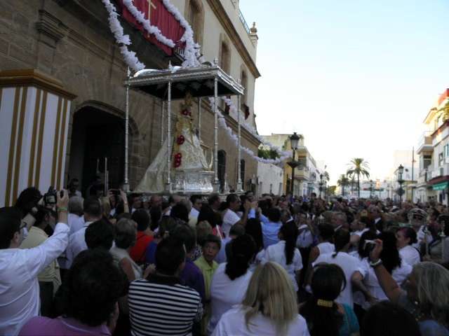 Coincidiendo con la Festividad de la Asunción, los roteños y turistas pudieron disfrutar ayer de la salida de la Virgen del Rocío que durante algo más de cuatro horas estuvo procesionando por las calles de la localidad en la que es ya una salida ordinaria desde que el año pasado se aprobara incluir este cambio en los estatutos de la hermandad, lo que permitirá que cada 15 de agosto la Blanca Paloma sea el centro de atención en Rota.