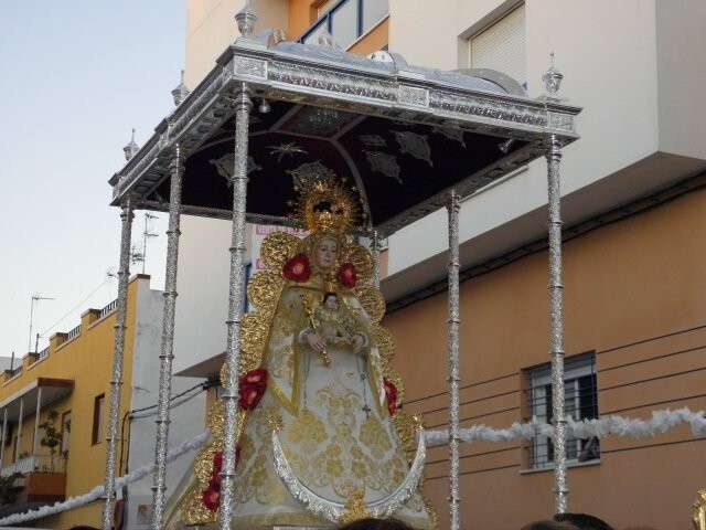 La Hermandad de Nuestra Señora del Rocío ha hecho un esfuerzo extraordinario para conseguir que esta cita luzca en todo su esplendor y nada tenía que ver la imagen de la virgen vestida de pastora el año pasado en el paso de Nuestra Señora la Esperanza del Calvario, cedido por la Hermandad del Amor, al paso plateado y las ropas de reina que ayer estrenaba para gusto de los rocieros y cofrades en general. Han sido meses de trabajo para conseguir los recursos necesarios y poder realizar una salida como la que ayer se pudo disfrutar en la villa con momentos de mucho sentimiento.