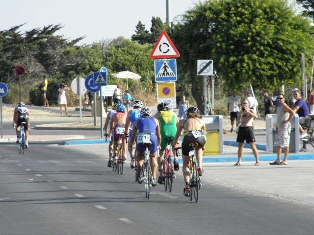 Broche de oro al verano deportivo.....y broche de laton a los organizadores de la triathlon.parece mentira con los años que llevan haciendola y que cada año la caguen de alguna forma. El año pasado equivocandose en la distancia de natacion y este año vaya chapuza que han hecho en la carrera en bici haciendo girar a los participantes sobre un cono y con el riesgo de chocar con los que venian mas retrasados por otro lado. DE VERGUENZA!!,!, y pa colmo nuestro amigo Mata el bombero intento el pobre remediarlo colocandose en el sitio para guiar a los ciclistas y le tomo los datos la policia local por "molestar". Vaya mañanita