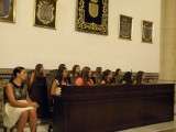 Con un salón capitular del Palacio Municipal Castillo de Luna lleno de gente, comenzó el desfile de las 22 damas del Rosario. Una por una fueron tomando asiento manteniendo el tipo ante tanta expectación y tantos nervios concentrados. Unos sentimientos que se dejaban notar también entre el público. Antes, tocaba el turno de la Dama Mayor 2012, María Rosa Armario Izquierdo, que ayer abandonaba su título para cedérselo a una nueva compañera. María Rosa, que ocupaba la mesa presiencial junto al delegado de Fiestas, Óscar Curtido, al exaltador de este año, José Antonio Rodríguez, al técnico de Fiestas, José Manuel Caballero, y a la alcaldesa de Rota, Eva Corrales, fue breve en su intervención. Pese a aparentar tranquilidad en la forma de leer su discurso, transmitía una emoción contenida que al final se dejó ver con algunas lágrimas. Fueron momentos muy emotivos para ella tal y como refirió en su intervención recordando que hace un año, los nervios los vivía ella en primera persona. María Rosa Armario agradeció la oportunidad que tuvo de poder vivir esta experiencia que se propuso como un reto. En todos estos meses ha intentado representar a la mujer roteña lo mejor que ha podido, principalmente en aquellos actos a los que son invitadas como ferias y eventos de localidades vecinas. La Dama Mayor saliente aseguraba no olvidar todo lo vivido y agradecía a sus compañeras del año pasado, las que formaban su corte de honor y pajes, su cariño. De la misma manera reconoció y agradeció el esfuerzo de su familia y el trato recibido por el delegado de Fiestas, el técnico de esta delegación y la propia alcaldesa por hacerle sentir más segura. Como casi todas las damas mayores, su discurso terminó aconsejando a las nuevas damas del Rosario que disfruten de la experiencia y aprovechen esta oportunidad.