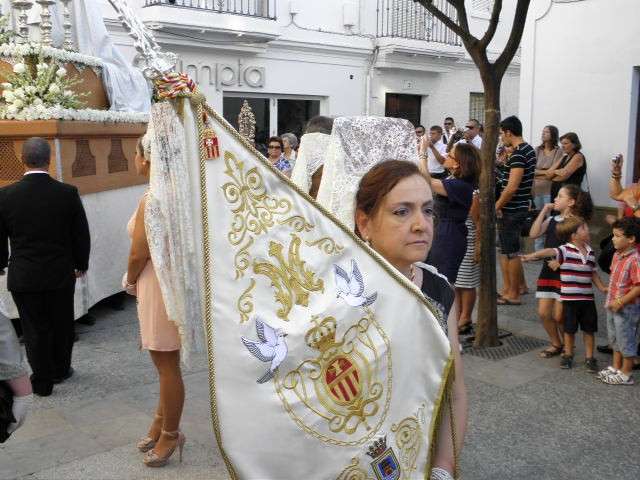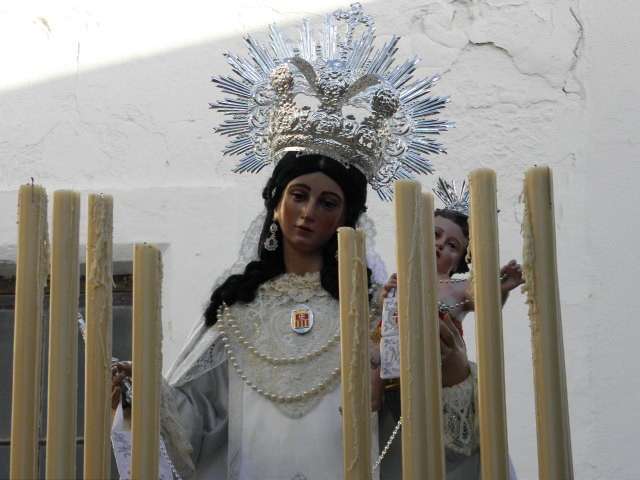 Vestida de blanco, con saya de tisú de plata y manto blanco con bordado plateado, la Merced procesionó inmaculada en un paso sencillo, que estrenó el año pasado, y que estuvo dirigido por el capataz Vicente Izquierdo, junto a los contraguías Juan Lobato, Paco Andrade y José Izquierdo. En esta ocasión, no había estrenos a destacar ya que la Agrupación Parroquial Nuestra Señora de la Merced ha hecho en estos tres años muchos esfuerzos para conseguir su salida en procesión, lo que no le ha permitido afrontar nuevos gastos este año.
