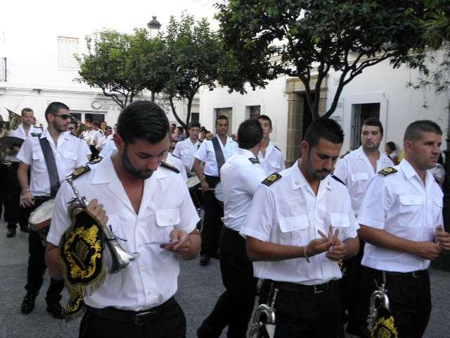 Acompañada por la banda de música de Nuestro Padre Jesús Nazareno, que pone los acordes musicales desde sus inicios, la Merced procesionó sencilla. Quizás, adelantar la hora de salida a las siete de la tarde, hizo que en sus primeros minutos no hubiera demasiado público por las calles de la localidad, aunque esa estampa fue cambiando a medida que avanzó el itinerario y se acercó a la zona más céntrica donde muchos roteños la acompañaron en su festividad que aunque realmente se celebra mañana martes 24 de septiembre, en Rota se adelantó al domingo para permitir que más ciudadanos pudieran disfrutar de ella.