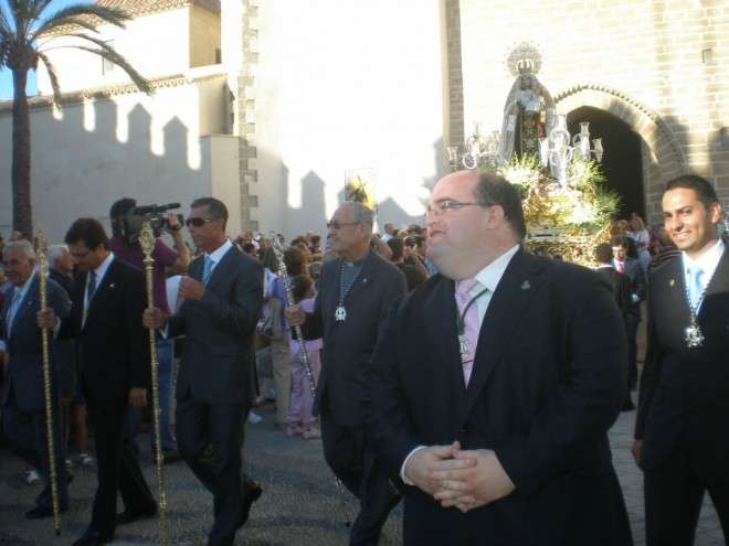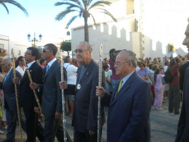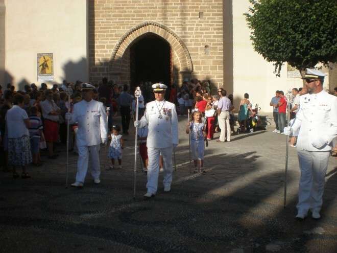 Tras un breve recorrido por el mar, acortado por las condiciones que marcaba el viento de poniente, la Virgen del Carmen volvió a apearse en su paso, que este año estrenaba el escudo bordado de la hermandad en el faldón delantero, para continuar con la segunda parte de su salida procesional, la que recorría las calles más céntricas del municipio al son de la Banda de Música de la Hermandad de Nuestro Padre Jesús Nazareno, y guiada por el capataz, José Bedoya Cerpa.
