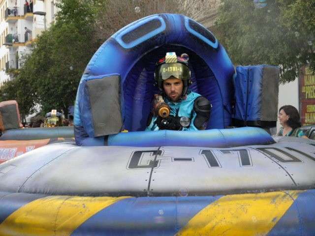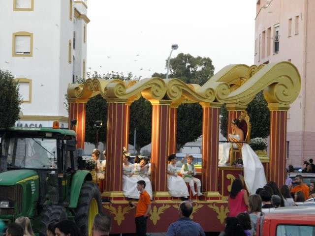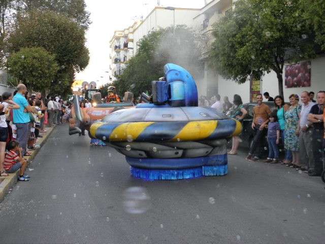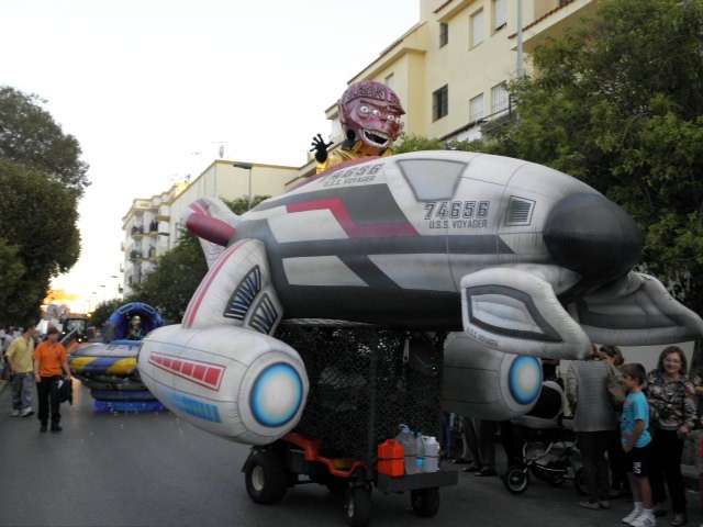 Abriendo el cortejo, la Banda de Música de Nuestro Padre Jesús Nazareno y tras ellos, unas naves galácticas que han sido la diversión de los más pequeños ya que echando humo o pompas de jabón han llamado mucho la atención por sus dimensiones y por el juego que sus conductores han dado. Quizás lo más destacable de esta cabalgata que ya lleva un par de años al igual que la salida de los Gigantes y Cabezudos levantando alguna crítica por lo reducida.